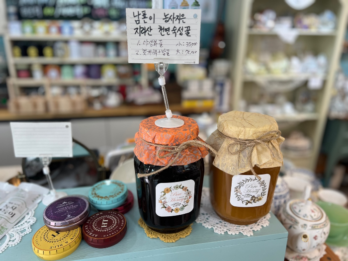 소품들 뿐만 아니라 카페 사장님 남편분께서 직접 농사지은 지리산 천연 숙성꿀도 판매하고 있어요.