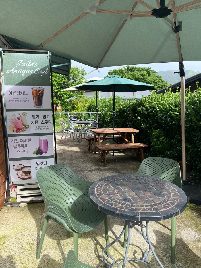 최참판댁 올라가는 길에 구경거리가 많아서 눈이 즐거웠는데, 그중 눈도 입도 즐거웠던 쥴리스 앤틱 카페를 소개해요.