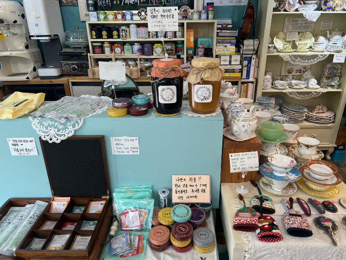 찬잔 세트 외에도 수제로 만든 여러 소품들을 판매하고 있어요.