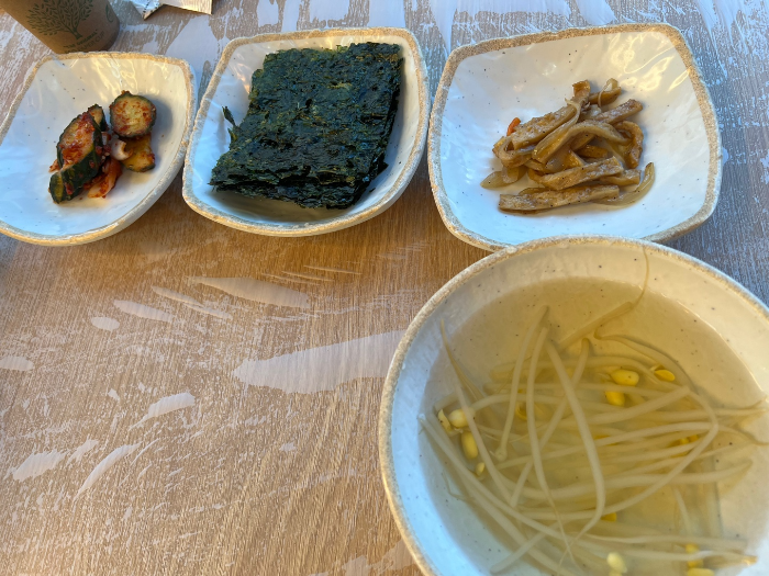 그러고 나서 밑반찬들이 먼저 나온 후 곧 메인메뉴도 나왔어요.